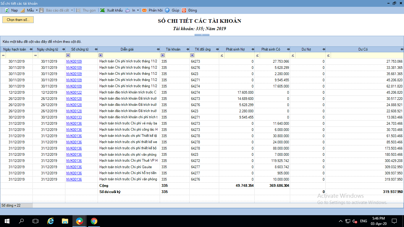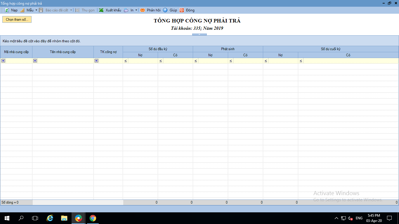 Nhờ misa hỗ trợ. Trong phần mềm tổng hợp công nợ tk 335 lên được bảng tổng hợp số dư phát sinh trong kỳ mà chỉ lên được sổ chi tiết 335. Như hình đính kèm. Nhờ Misa hỗ trợ