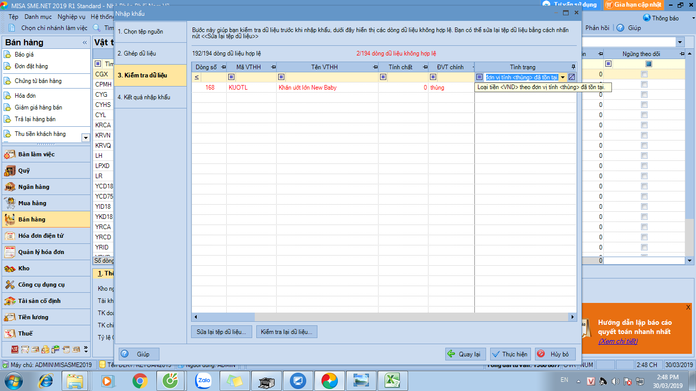 - Nếu nhập khẩu 2 mã hàng này đã có thông tin đầy đủ trong danh mục VTHH rồi thì sẽ báo trùng như vậy, và nếu không có thông tin gì bổ sung cho mã này thì anh/chị bỏ qua thông báo và nhấn thực hiện nhé!