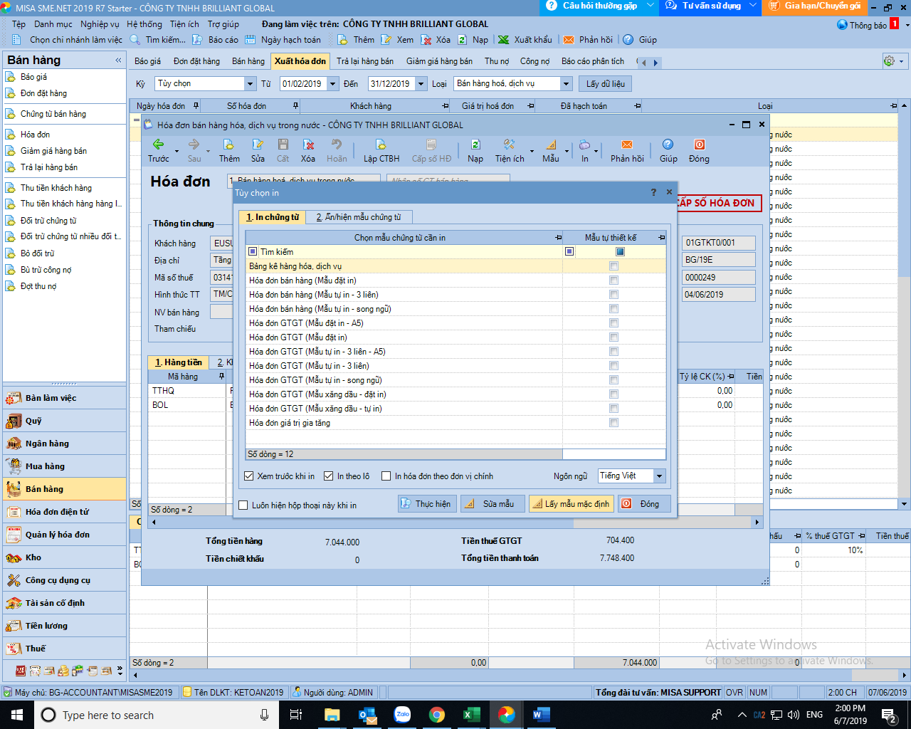 Vì em vô tùy chọn in, nhưng không có mẫu HDDT để chọn ạ