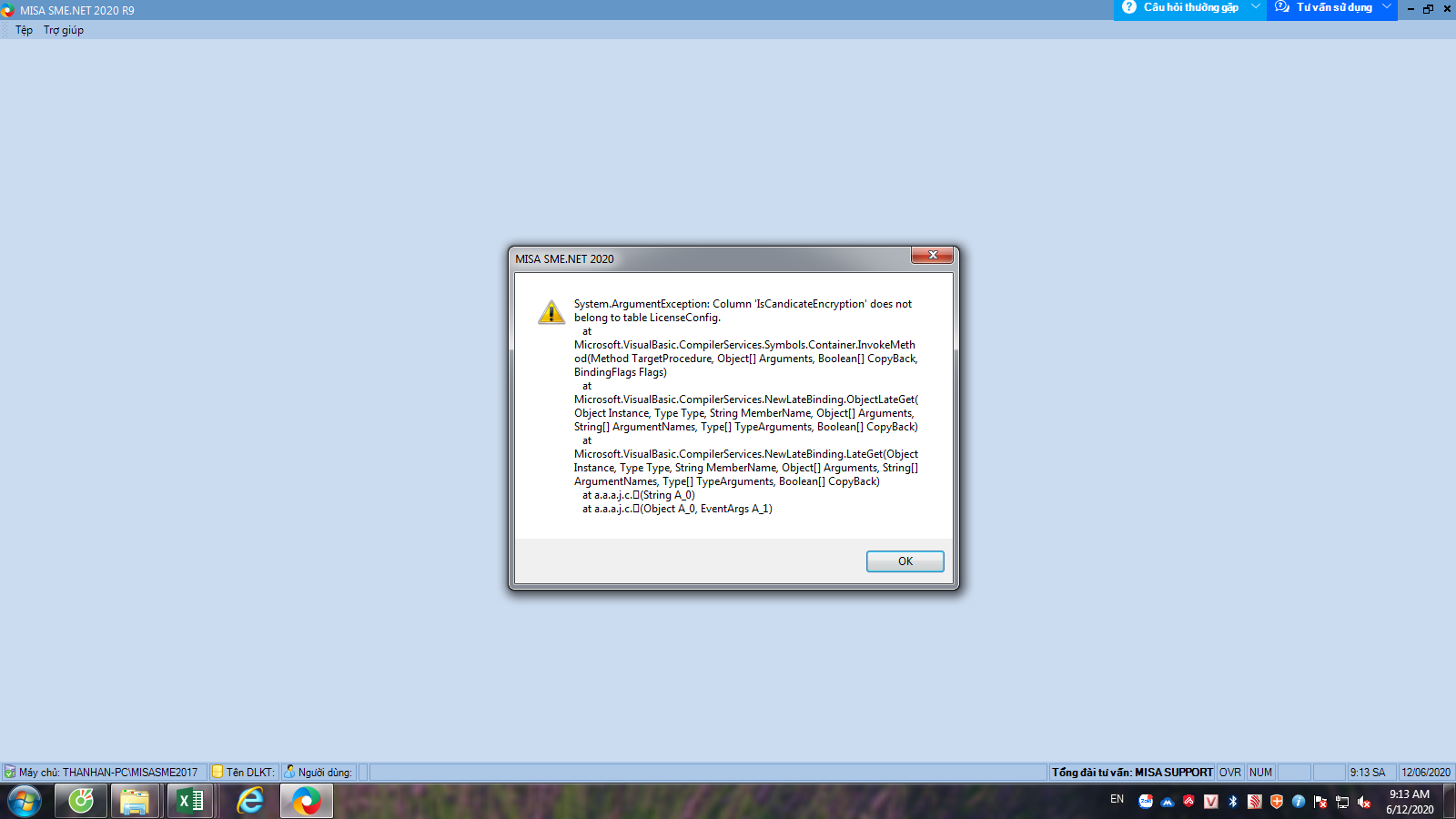Chào Anh/ Chị! Bên mình muốn mở lại dữ liệu 2017 trên Phần mềm Misa SME 2020 nhưng không mở được. Màn hình báo lỗi như thế này là sao