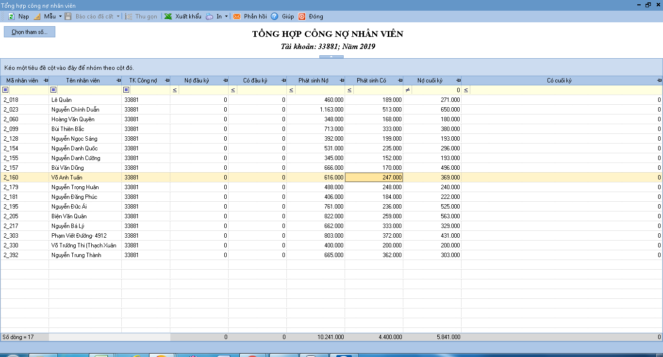 LOI BAO CAO TONG HOP CONG NO NHAN VIEN