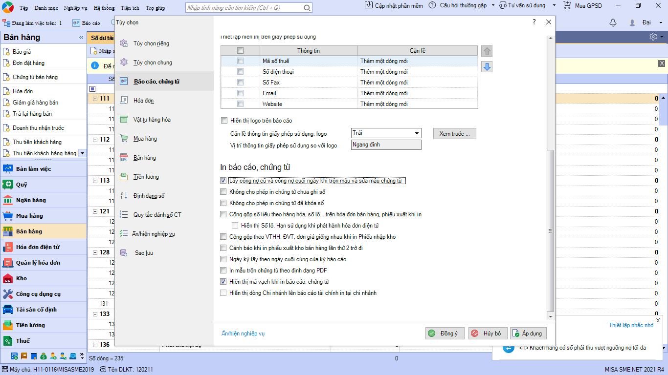 Thêm trường công nợ trong hóa đơn bán hàng