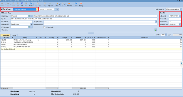 Anh/Chị hướng dẫn em cách xuất hóa đơn điện tử của loại hình bán hàng xuất khẩu nha.